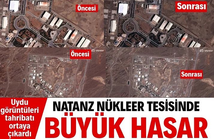 Vantor'un görüntülerinin Natanz'daki üç binanın yıkıldığını gösterdiği belirtilirken bunlardan ikisi, binlerce santrifüjün (güç santrallerinde veya silahlarda kullanılmak üzere uranyum zenginleştiren makineler) bulunduğu iki yeraltı salonuna açılan personel girişleriydi.