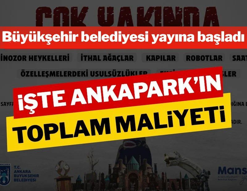 Ankara Büyükşehir Belediyesi (ABB) resmi internet sitesinde ilk olarak ANKAPARK için yapılan harcamaları yayınlandı. Geçmiş dönemde ihale edilen, işletilemeyen ve ABB'nin geri almak için hukuki mücadelesini sürdürdüğü ANKAPARK için yapılan harcamaların toplam tutarı 801 milyon 288 bin 824 dolar olarak açıklandı.
