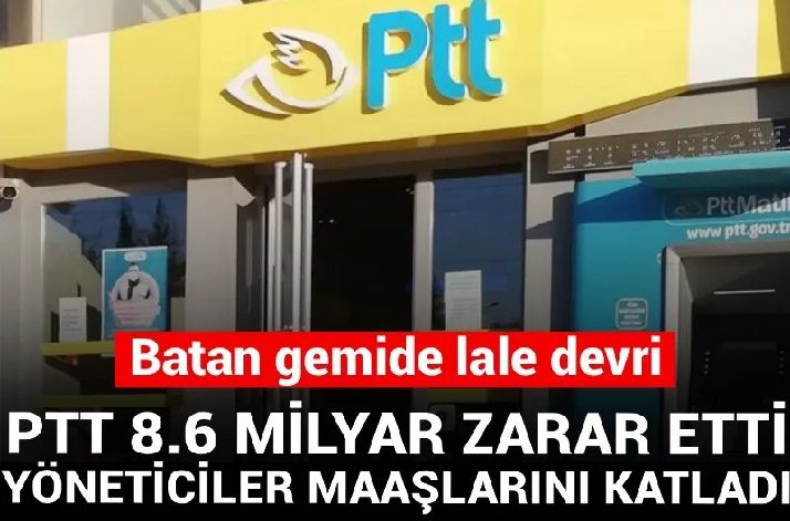 Türkiye’nin en köklü kuruluşu, 185 yıllık PTT, zararını her geçen gün katlayarak uçuruma sürükleniyor. Ortaya çıkan tablo korkunç: Kurum son 6 yılda tam 8 milyar 605 milyon lira zarar etti. Ancak kurum batarken, geminin dümenindekiler kendilerini rekor zamla ödüllendirdi. Yönettikleri kurum zarar üzerine zarar yazarken, yönetim kurulu üyelerinin maaşlarına yüzde 116 oranında zam yapıldığı ortaya çıktı.