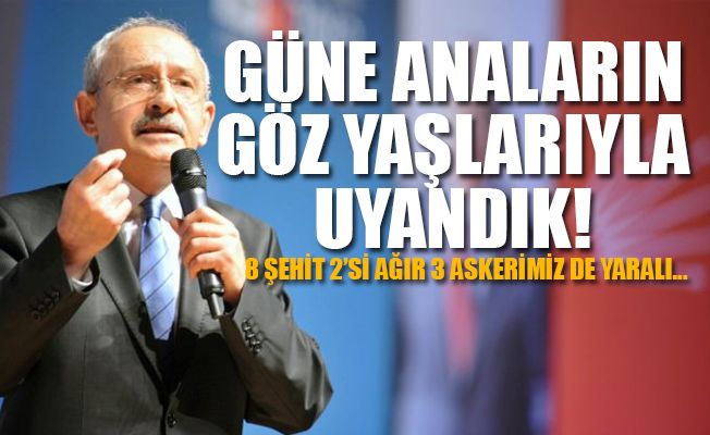 CHP lideri Kemal Kılıçdaroğlu twitter'dan 8 şehit için mesaj yayınladı. "Güne şehit haberiyle, anaların göz yaşıyla uyandık" diyen Kılıçdaroğlu "Şemdinli'de şehit düşen asker ve korucularımıza rahmet, milletimize sabır diliyorum." ifadelerini kullandı.