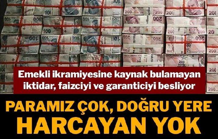 Ancak bütçe kalemleri, emekliden esirgenen kaynakların başta itibar ve şatafat olmak üzere kamudaki birçok harcamaya oluk oluk akıtıldığını gösteriyor. Sadece Kamu Özel Sektör İşbirliği projeleriyle bir avuç müteahhide bu yıl 102 milyar lira para aktarılacak. Oysa bin liralık zam verilse milyonlarca emekli torunlarına harçlık dağıtacak ya da sofrasına bir kilo et alabilecekti. İtibardan kesilmedi, ikramiyeden kesildi, emeklinin bayram sevinci kursağında kaldı.