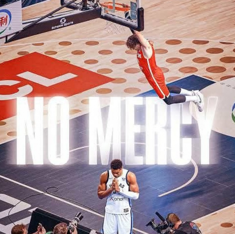 Bu fotoğrafa sosyal medya ekibi 'Merhamet Yok' anlamına gelen 'No Mercy' sözü yazıldı. Bu fotoğrafı kısa sürede Yunanistan, FIBA'ya şikayet etti.