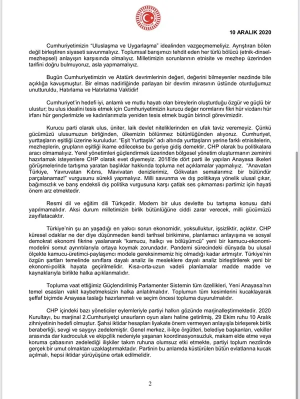 Mesajlarımı söyleyeyim ben; Partide birlik sağlansın istiyoruz. Sayın İnce, bütün ötekileştirilen, partiden bütün insanları toplansın iktidara öyle yürüyelim diyoruz. Birinci mesaj bu. İkincisi, partide demokrasiyi derinleştirelim öyle iktidara yürürüz diyorum. Üçüncüsü birinci parti olmaya çabalayalım. CHP güçlü olduğu zaman cumhuriyetin değerleri de güçlüdür. Dördüncüsü de kurucu değerlerden taviz vermeyelim. Bu gücünüzle orantılı bir şey. Diğer partiler farklı şeyler istiyorlar, özellikle HDP'nin bazı istekleri var. Bunlar da kurucu değerlerden taviz vermeyi gerektireceği için bize uymuyor.