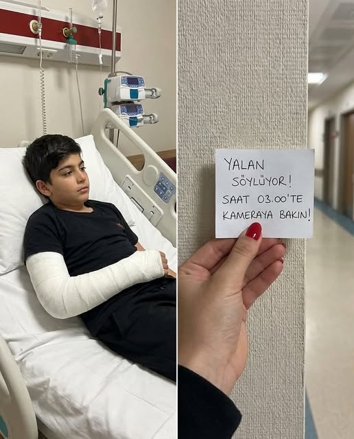 Oğlumun bacağı kırıldıktan sonra ona bakmak için hastaneye gittim—sonra hemşire sessizce elime bir kağıt tutuşturdu: “YALAN SÖYLÜYOR. SABAH 3’TE KAMERAYI KONTROL EDİN.”