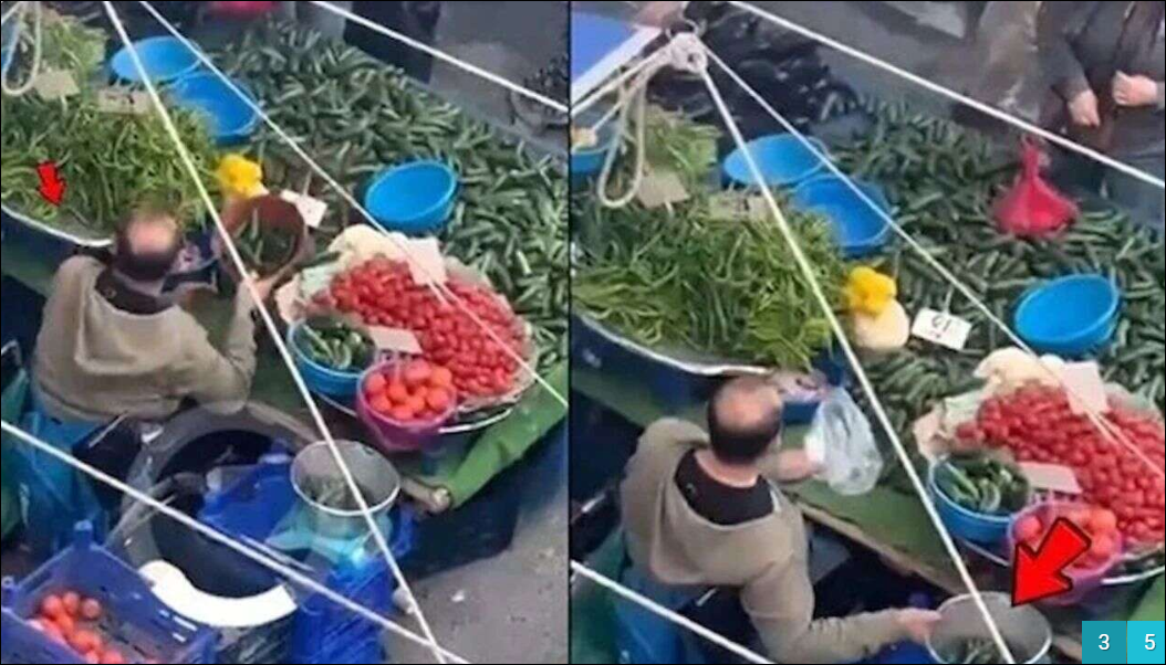 Görüntülerde, pazarcının alışveriş sırasında müşterilerin dikkatsiz anını fırsat bilerek ürünleri değiştirdiği açıkça görülüyor. Sosyal medyada hızla yayılan video, kısa sürede binlerce kez paylaşıldı ve büyük tepki topladı.