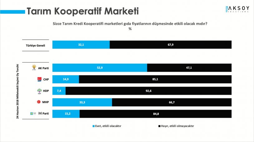 Seçmenlere "Sizce Tarım Kredi Kooperatifi marketleri gıda fiyatlarının düşmesinde etkili olacak mıdır?" diye soruldu.