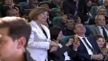 Konuşurken, ''Belediye başkanı buradayken, CHP'yi eleştirmeyeceğim' anlamında sözler edince Eskişehir belediye başkanı Ayşe Ünlüce'den tepki gecikmedi.