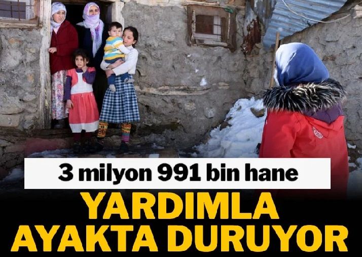 Uzun süredir sosyal yardım verilerini paylaşmayan Aile ve Sosyal Hizmetler Bakanlığı’nın yayınladığı son rapor acı gerçeği ortaya çıkardı. Rapora göre Türkiye’de 3 milyon 991 bin 766 haneye her ay 5 bin 50 lira sosyal yardım yapılıyor. Her evde ortalama 4 kişinin yaşadığı varsayıldığında ülkede toplam 5 milyon 967 bin 64 kişinin sosyal yardımlarla ayakta durduğu gerçeği ortaya çıkıyor.