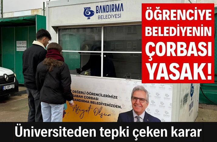Balıkesir'in Bandırma ilçesinde, Bandırma Onyedi Eylül Üniversitesi kampüsünde Bandırma Belediyesi tarafından yıllardır sürdürülen sabah çorbası ikramının üniversite yönetimi tarafından durdurulduğu bildirildi.