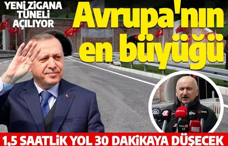“Trabzon’un üretim ve ticaret faaliyetlerini kat ve kat arttıracak, ülkemizin ve Avrupa’nın en uzun, dünyanın ise sayılı çift tüp karayolu tünellerinden olan Zigana Tüneli’ni yarın hizmete açarak, Trabzon’umuz ve bölgemiz ile muhteşem bir hizmeti daha buluşturacağız. Ülkemiz adına mühendislik harikası önemli bir projeyi daha hayalden gerçeğe dönüştürdük”