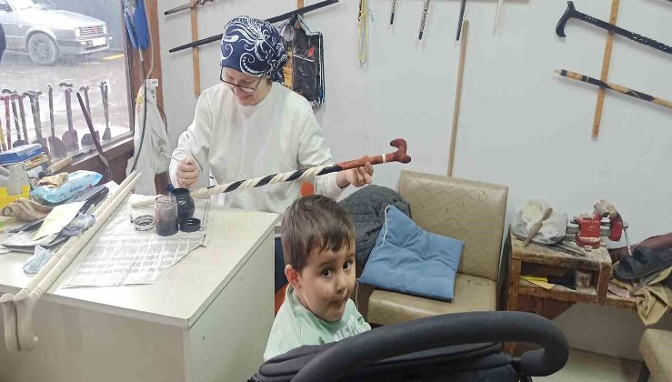 20 yıllık Fatime usta bir eliyle torun sallıyor, diğer eliyle dünyaca ünlü bastonlara şekil veriyor