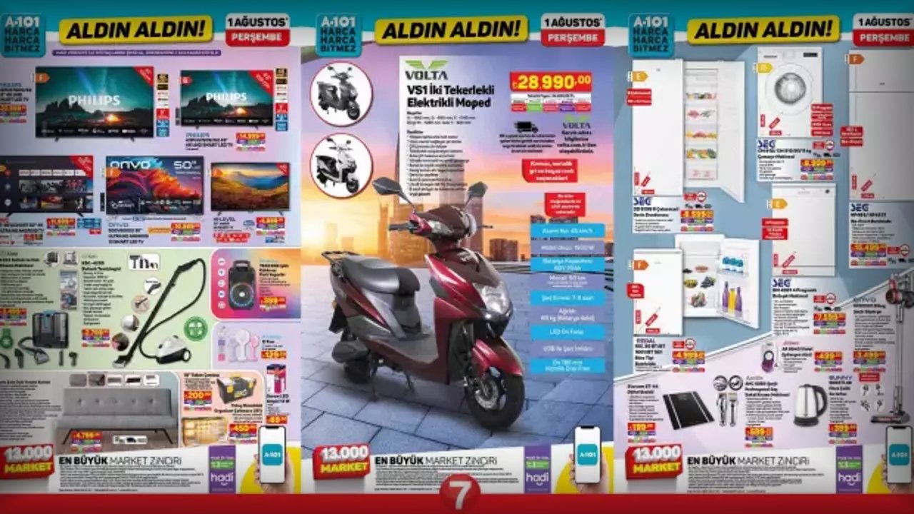 A101'in bu haftaki kataloğunda yer alan bir diğer dikkat çekici ürün ise elektrikli moped. Hem çevre dostu hem de ekonomik bir ulaşım aracı olan bu mopedi, A101 mağazalarında bulabilirsiniz. Ayrıca, alüminyum bisiklet de spor yapmayı sevenler için uygun fiyatlarla sunuluyor.