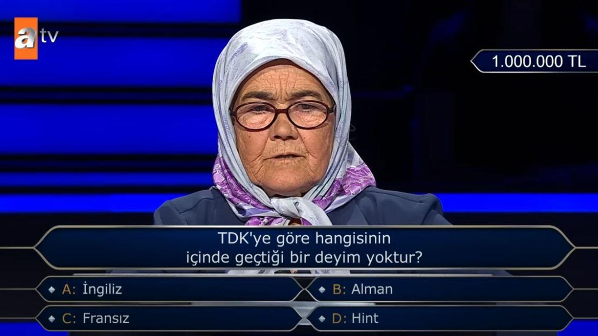 Günay Teyze, 500 bin lira ile yarışmadan çekilirken, Oktay Kaynarca soruya vereceği yanıtı merak etti. Günay Teyze, 'Hint' dedi ve bu yanıtı verseydi kaybedecekti. Zira sorunun doğru yanıtı Alman olacaktı.