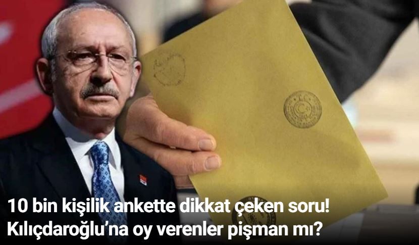 Katılımcılara, eski CHP Genel Başkanı Kemal Kılıçdaroğlu’na oy verdilerse buna pişman olup olmadıkları sorusu yöneltildi. Özkara’nın AkademikLink YouTube kanalında açıkladığına göre, ‘Hiç pişman değilim’ diyenlerin oranı yüzde 27.1 olurken ‘Çok pişmanım’ diyenler yüzde 62.4 oldu.