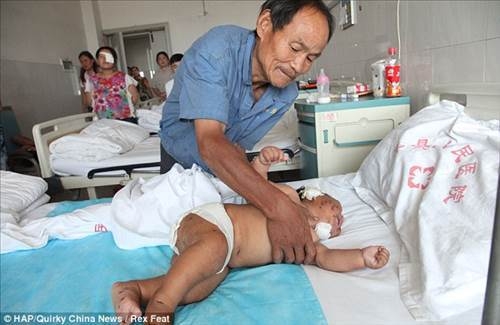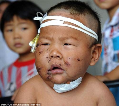 Olay yerine hemen intikal eden sağlık tarafından hastahaneye kaldırılan bebeğe 103 tane dikiş atıldı. Psikolojik bozukluğu tanı konulan anneden bebek Çinsı hükümeti yuvaya teslim edildi.Çin'de