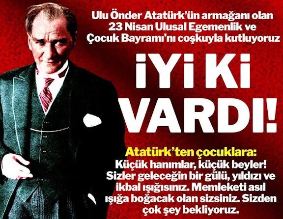 23 NISAN ULUSAL EGEMENLIK VE ÇOCUK BAYRAMIMIZ KUTLU OLSUN