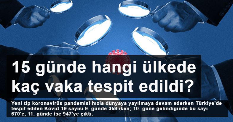 Yeni tip koronavirüs pandemisi hızla dünyaya yayılmaya devam ederken Türkiye'de tespit edilen Kovid19 sayısı 9. günde 359 iken; 10. güne gelindiğinde bu sayı 670'e, 11. günde ise 947'ye çıktı.