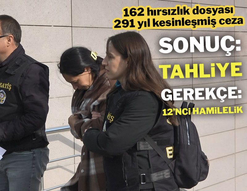 Eskişehir'de 162 ayrı hırsızlık dosyasından 291 yıl 7 ay kesinleşmiş hapis cezası bulunan 35 yaşındaki kadın gözaltına alındı ancak 12'nci hamileliği nedeniyle yine tutuklanamadı.