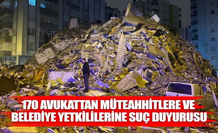 Artı Gerçek'ten Dinçer Gökçe'nin haberine göre İstanbul, Ankara, İzmir, Kocaeli, Çanakkale, Çorum, Adana, Bursa, Kırklareli, Mersin, Gaziantep Barosu’na üye 170 avukat, depremin yaşandığı illerin başsavcılıklarına suç duyurusunda bulundu. Savcılık başvurularında, şüphelilerin ‘Bilinçli Taksirle Öldürme Suçu’nu işledikleri öne sürüldü. Hazırlanan ilk savcılık başvurularında, şüpheli konumda ise 'yıkılan binaların müteahhitleri, yapı ruhsatı veren, iskân ruhsatı veren ve denetim görevini yerine getiren kişiler' yer aldı.