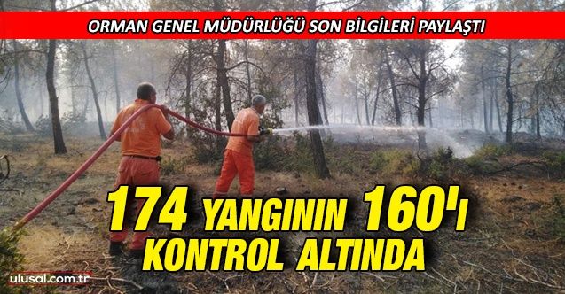 Söz konusu yangınların 160'ının kontrol altına alındığı ifade edilen açıklamada, 5 ilde 14 yangını kontrol altına alma çalışmalarının sürdüğü kaydedildi.