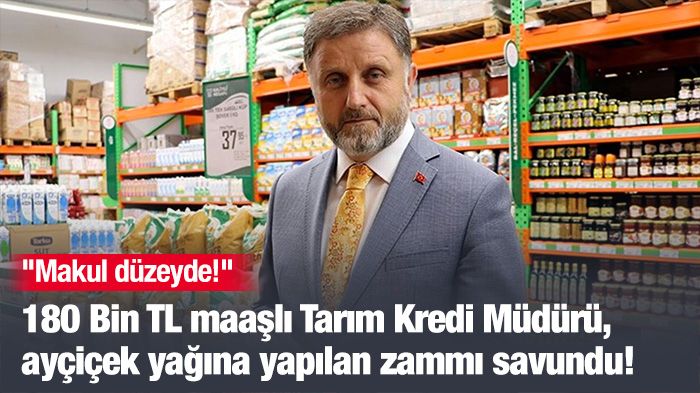 AKP'li Cumhurbaşkanı Recep Tayyip Erdoğan'ın "Fiyatlar gayet uygun" diyerek alışveriş yaptığı Tarım Kredi Kooperatifleri’nde bu alışveriş sonrası 180 bin TL'lik maaşıyla gündeme gelen Tarım Kredi Kooperatifleri Müdürü Fahrettin Poyraz, ayçiçek yağına yapılan zamlar için "Makul düzeyde" ifadelerini kullandı.