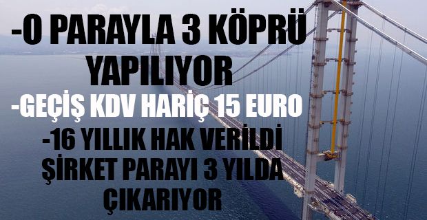 "ŞİRKET KÖPRÜNÜN MALİYETİNİ 3 YILDA ÇIKARIYOR"