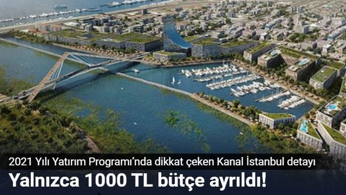 Erdoğan’ın her fırsatta yapacaklarına dair iddiasını yinelediği proje için 2021 yılında sadece 1000 TL’lik kaynak ayrıldı. 2021 Yılı Yatırım Programı’nı içeren Cumhurbaşkanı Kararı, Resmi Gazete’nin mükerrer sayısında yayımlandı.