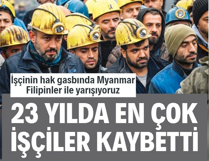Evine ekmek parası dahi götüremeyen, ücretleri yüksek enflasyon karşısında eriyen emekçilerin milli gelirden aldığı pay da her geçen yıl eriyor. İşçiler son üç yılda milli gelirden aldıkları her 4 liranın 1 lirasını kaybetti. Gittikçe daha örgütsüz hale getirilen işçilerin toplu sözleşme hakları da getirilen barajlara takıldı. 21 grev erteleme adı altında yasaklandı.