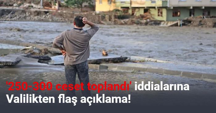 Kastamonu Valiliği'nden Bozkurt'ta yaşanan sel felaketiyle ilgili olarak 250300 ceset toplandığı ve kimliklerinin tespit edilemediği iddiası üzerine açıklama geldi.