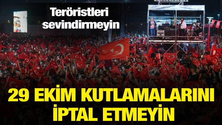 Cumhuriyet Bayramı kutlamalarını iptal ederek teröristleri ve terör sevicilerini sevindirmeyin lütfen...