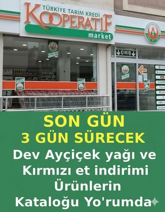 3 Gün sürecek Tarım kredi marketlerinde dev indirim başlıyor. Ayçiçek yağı ve Kırmızı ette inanılmaz indirim. Katalog ve Ayrıntılar Yo'rumdaFiyatların arttığı bu süreçte marketler tarafından yapılan indirim kampanyaları da dikkatle inceleniyor. Tarım Kredi Kooperatif marketleri herkesi kıskandıracak muhteşem bir indirimle geldi. 5 litrelik ayçiçek yağının fiyatı dibe vurdu. Yalnızca 3 gün sürecek kampanyanın son günü. İşte tüm detaylar