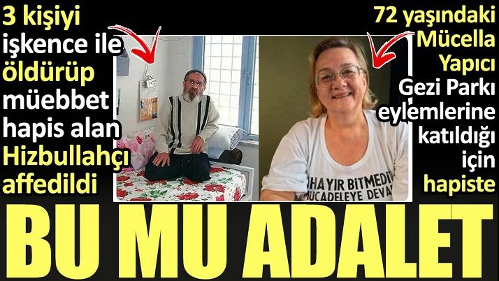 Erdoğan'ın Hizbullah hükümlüsü Mehmet Emin Alpsoy'u affetmesi ülkedeki adaletsizliği bir kez daha gözler önüne serdi. Mücella Yapıcı, Gezi Parkı eylemlerine katıldığı gerekçesiyle 1 yıldır hapiste...