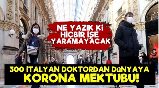 300 İtalyan doktorun imzasıyla yayınlanan açık mektubun tam metni şu şekilde: Muhakkak bildiğiniz gibi, İtalya’da çok vahim bir koronavirüs salgını yaşıyor. Virüs, ortaya çıkışının ardından geçen 3 hafta gibi kısa bir sürede 10.000 kişiye bulaştı.