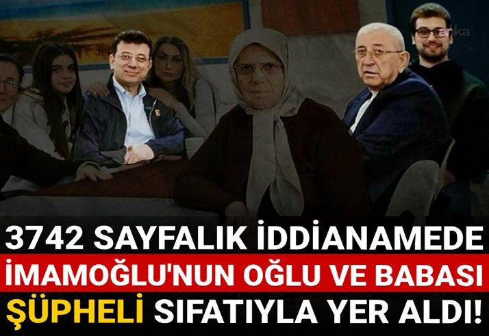 Soruşturmanın başlamasından 237 gün sonra hazırlanan iddianamede Cumhurbaşkanı Adayı ve İBB Başkanı Ekrem İmamoğlu'nun 2 bin 352 yıla kadar hapis cezası istenirken, İmamoğlu'nun babası ve oğlu da şüpheli sıfatıyla yer aldı.