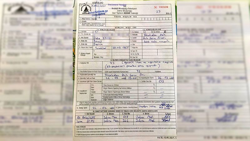 Antalya'da, koronavirüs önlemleri kapsamında uygulanan 65 yaş ve üstü vatandaşın sokağa çıkma yasağına uymayarak, semt pazarında tezgah açan Dudu K.'ye (65), Kabahatler Kanunu'na göre 392 TL para cezası kesildi. Dudu K.'nin, 4 gün önce 65 yaşına girdiği ortaya çıktı.24 Mart’ta, Yüksekalan Mahallesi’ndeki açık semt pazarında tezgah açan Dudu K., zabıtaların uyarısını dikkate almadı. İdari Yaptırım Kararı Tutanağı’nda ‘Gerekli ikaz ve uyarılara rağmen 65 yaş ve üzeri pazarda satış yapması’ nedeniyle ceza kesildiği belirtilen makbuzda Dudu K.’nin doğum tarihi ve ceza kesildiği tarihe bakıldığında 65 yaşına 4 gün önce girdiği anlaşıldı.