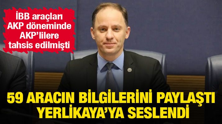 "İçişleri Bakanı Ali Yerlikaya’ya duyurulur! İstanbul Büyükşehir Belediyesi’nde, 2017-2019 yılları arasında, yasa dışı olarak AK Parti İstanbul İl Başkanlığına tahsis edilen 59 aracın bilgilerini paylaşıyorum. Bu suça bulaşan AK Partili yöneticiler ve dönemin İBB üst düzey yetkilileriyle ilgili görevinizin gereğini şimdi yerine getirecek misiniz? Bu bilgiler yeterli gelmezse Araçların motor ve şase numaralarını, hangi AK Partililer tarafından teslim alındığını, kullanıldığını size iletebilirim."