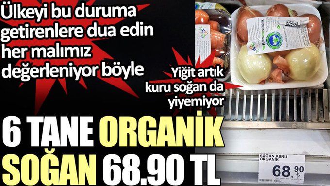 Bir dönemin kendi kendine yeten sayılı tarım ülkelerinden olan Türkiye’de 6 tane organik soğan 68,90 TL’ye satılmaya başlandı.