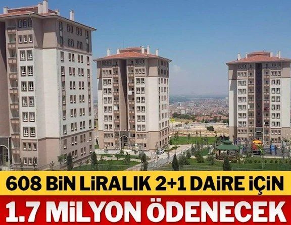TOKİ'nin 3+1 konutunda ise 850 bin TL olan başlangıç fiyatı yüzde 10 enflasyon olması durumunda toplam ödeme 2 milyon 395 bin liraya varıyor. Enflasyon yüzde 20 olursa 3+1 konutta toplam ödeme 8 milyon 546 bin lirayı buluyor.