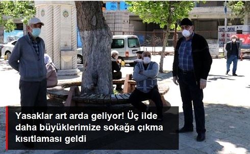Malatya Valiliği, yeni tip koronavirüs (Kovid19) tedbirleri kapsamında 65 yaş ve üstündeki vatandaşların 10.00 ila 17.00 saatleri dışında sokağa çıkmalarının kısıtlandığını bildirildi. Siirt'te ise 65 yaş ve üstü vatandaşların 17.00 ila 24.00 saatleri arasında dışarı çıkmaları kısıtlandı. Şanlıurfa'dan gelen yasak haberinde ise 65 yaş ve üstündeki vatandaşların 06.0010.00 ve 16.0018.00 saatlerinde sokağa çıkmalarının kısıtlandığı belirtildi.