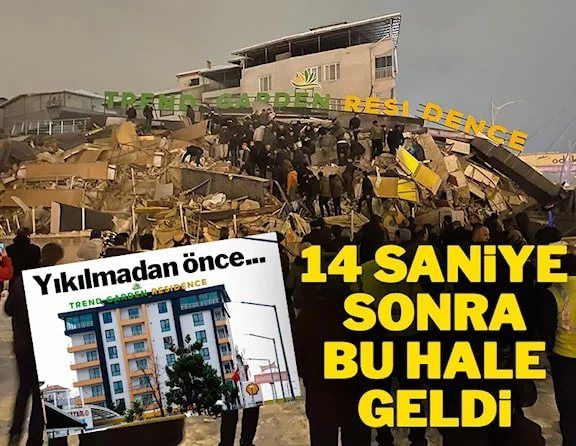 Malatya’da da hissedilen deprem sonrası kent merkezinin değişik bölgelerinde çok sayıda bina çöktü. Malatya Yeşilyurt ilçesi Turgut Özal Bulvarında faaliyet gösteren Trend Garden Residence da deprem nedeniyle yıkıldı.
