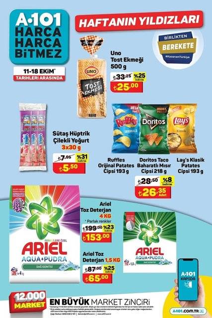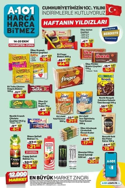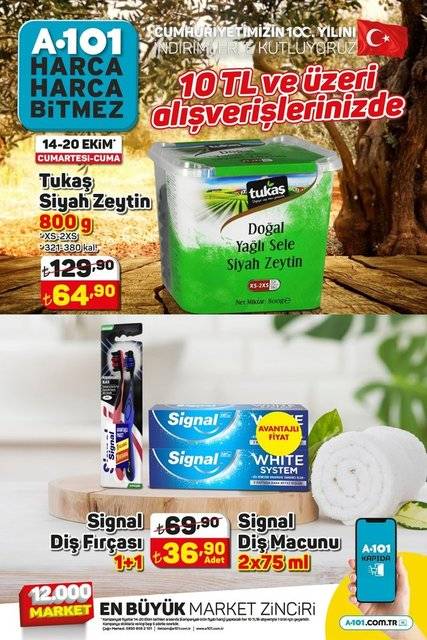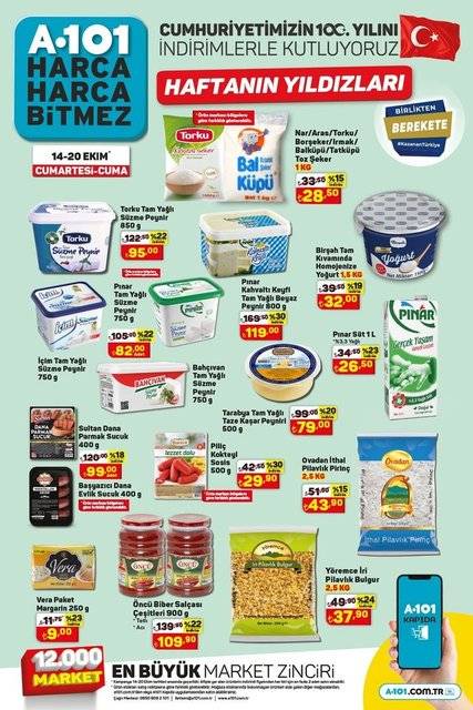 A101 Marketler zinciri, Cumhuriyetimizin 100, Yıl promosyon kampanyasına katılmanın yanı sıra, ay belli günlerindeki "Aldın Aldın, Haftanın Yıldızı, Çok al az öde" kampanyalarıyla başlayan ürün satışlarına devam ediyor. Bu bağlamda 19 Ekim 2023 Perşembe ürün kataloğu yayınlandı! cep telefonu, Televizyon, yiyecek, temizlik malzemesi ve bir çok ürün ve özellikleri...