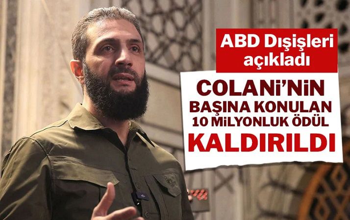 Reuters, ABD'nin Suriye’nin fiili yeni yöneticisi Ahmed el-Şaraa'nın (Colani) başına koyduğu 10 milyon dolarlık ödülden vazgeçtiğini duyurdu.