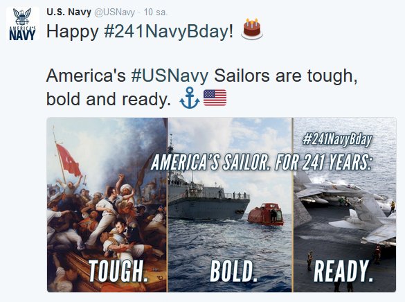 2016 yılında Amerika Birleşik Devletleri'nin donanmasına ait resmi Twitter hesabından skandal bir paylaşımda daha bulunulmuştu.