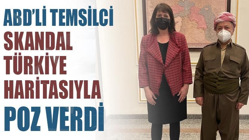 Ağar, yaptığı paylaşımda “Bu tür haritaların önünde poz vermeyi ne kadar da çok seviyorlar. Barzani’nin yanındaki ABD Uluslararası Din Özgürlüğü Komisyonu (USCIRF) Başkanı Nadine Maenza. Türkiye’yi parçalanmış gösteren harita 1794 Londra basımlı.” ifadelerini kullandı.