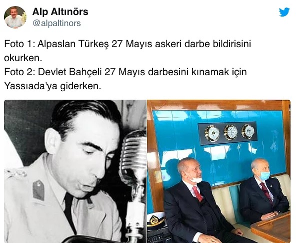 MHP Genel Başkanı Devlet Bahçeli'nin Yassıada törenlerine katılacağını yazan Hürriyet yazarı Abdulkadir Selvi'nin 5 yıl önce 'Alparslan Türkeş' hatırlatmalı 1960 ihtilali tweeti çok konuşulacak.