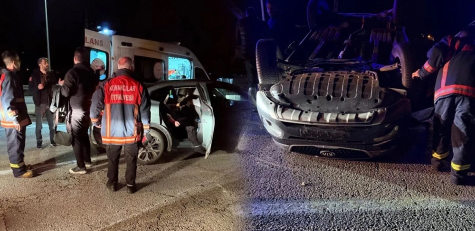 F.A. idaresindeki 63 E 3241 plakalı otomobil ile A.K. idaresindeki 34 NV 1362 plakalı otomobil çarpıştı. Çarpışan otomobillerden biri ters döndü.