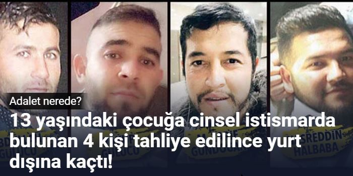 Hatay’da 13 yaşındaki çocuğa cinsel istismarda bulunmakla suçlanan 8 sanıktan 5’ine ceza hapis cezası verildi. 40’ar yıla yakın hapse çarptırılan sanıklardan Abdullah Gülücü, Yakup Gülücü, Nasreddin Halbaba ve Mehmet Zarif Gündoğan ceza alacaklarını öğrenince yurtdışına kaçtı.