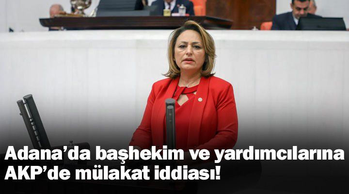 Cumhuriyet Halk Partisi (CHP) Adana Milletvekili Dr. Müzeyyen Şevkin, Adana’daki devlet hastanelerinde görev yapan başhekim ve başhekim yardımcılarının AKP İl Başkanlığı’nda mülakata çağrıldığına yönelik iddiaları Türkiye Büyük Millet Meclisi (TBMM) gündemine taşıdı.