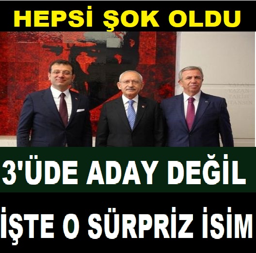 Hala bir adayı açıklamayan 6+1 lik z’illet ittifakı kimi aday gösterelim diye kara kara düşünüyor İstanbul ve Ankara Belediye Başkanları ile belediyelerde bir dönem daha devam etmeyi isteyen Kılıçdaroğlu kendisinin aday olmasını istiyor ama Erdoğan karşısında kimse Kılıçdaroğluna şans tanımıyor Cumhurbaşkanlığı seçimlerinde Başkan Erdoğan’a karşı m’uhalefetin 3 isim üzerine durduğu ortaya çıktı bu isimler ise tam sürpriz kişiler