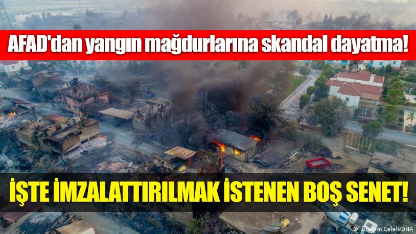 Antalya Manavgat'ta evi, işyeri ve ahırı yangından zarar gören köylülere inşaat yapım maaliyetlerinin yazılmadığı, rakam ve içerikleri doldurulmamış 'Talep ve Taahhütname' ve 'Afet Borçlandırma Senedi' adlı evraklar imzalatılmak isteniyor.